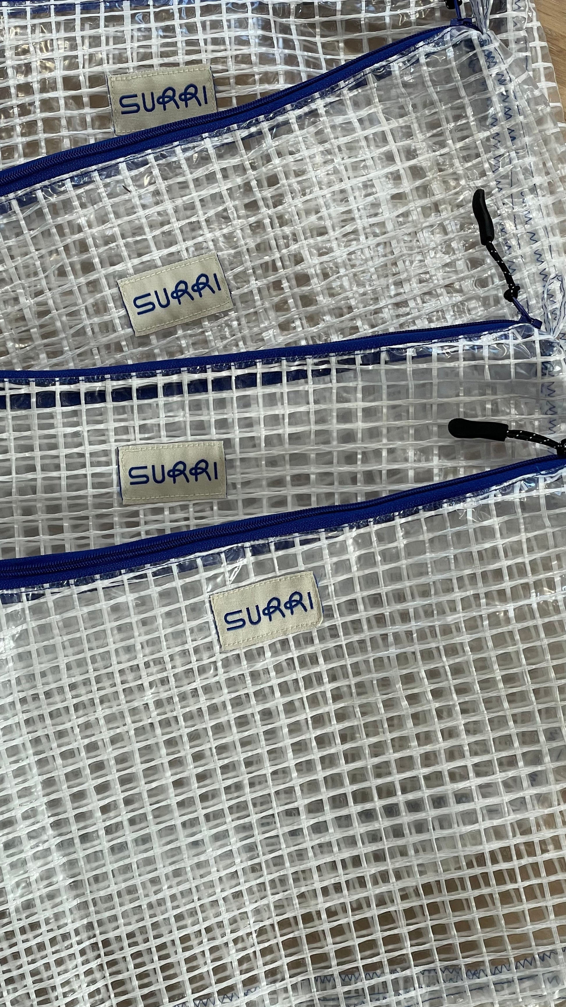 Tasche weiss mit blauem Zipper: